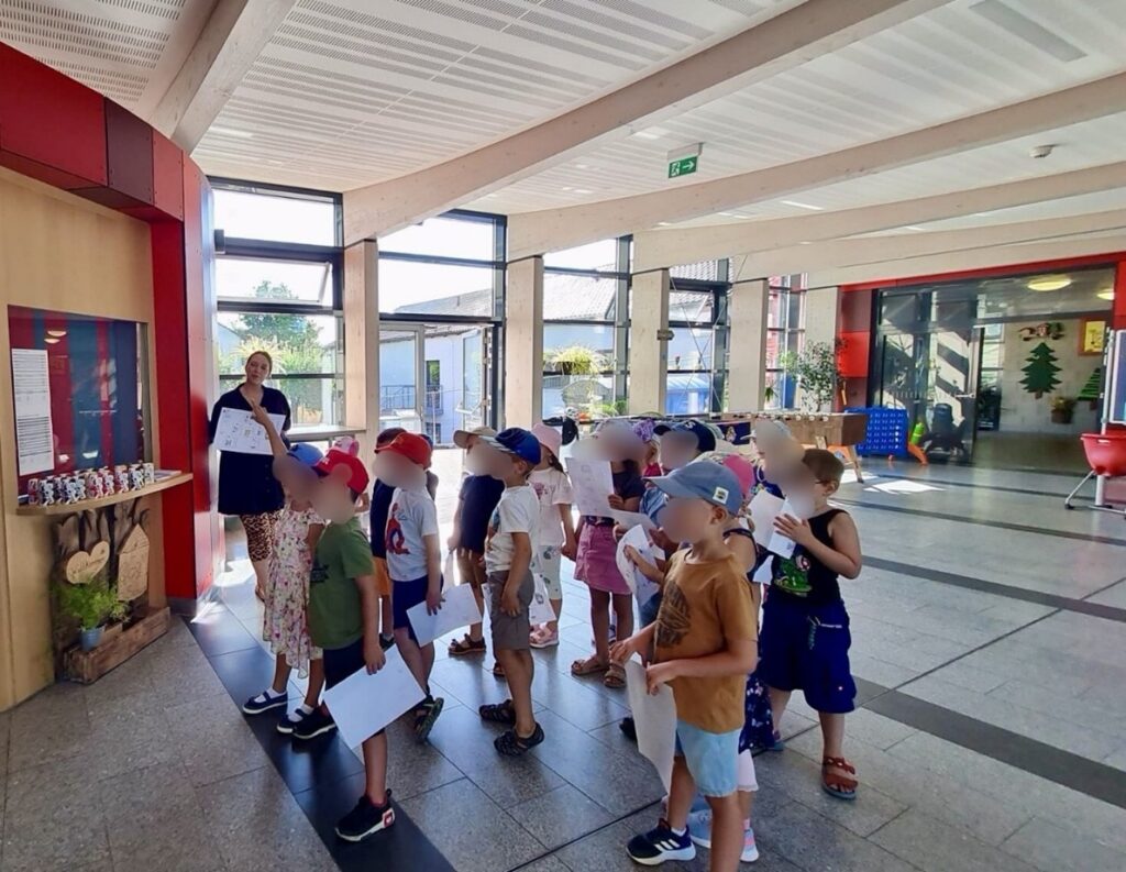 Die Rallye startete im Pausenhof, wo alle Schulkinder täglich ihre große Pause verbringen. Danach besuchten die Vorschulkinder in zwei Gruppen die beiden ersten Klassen und durften entdecken, wie es in einem Klassenzimmer aussieht. Freudig wurden alte Kindergartenfreunde und -freundinnen begrüßt.