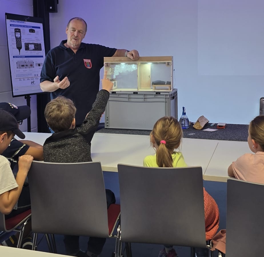 Großes Augenmerk galt dem neuen Zwei-Zimmer-Rauchhaus im Maßstab 1:10. Hier kann die Rauchverteilung in zwei Räumen und das Ansprechen eines Rauchwarnmelders im Brandfall sehr gut demonstriert werden.